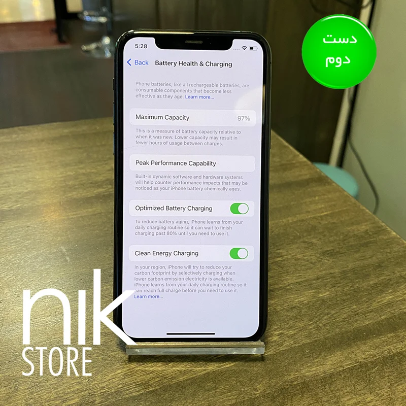 کلیه عکس های گوشی ۱۱ پرو دست دوم مربوط به خود گوشی بوده و برای اطمینان شما عزیزان ۵ رقم از انتهای کد imei گوشی در بخش مشخصات ذکر شده است . این ۱۱ پرو دارای حافظه ۲۵۶ گیگ و باتری ۹۷ درصد می باشد. سلامت فنی این دستگاه از طرف فروشگاه نیک استور تضمین میگردد . این دستگاه همراه با جعبه اصلی و کابل شارژ بوده و آداپتور ندارد . ۱۱ پرو دست دوم ۲۵۶ گیگ مشکی تک سیم کارت و سفارش کشور آلمان میباشد . همچنین برای مشاهده و تست شما عزیزان می توانید به آدرس فروشگاه اپل استور نیک واقع در خ فرشته - خ بوسنی هرزگوین - مجتمع مینیاتور مراجعه بفرمایید .