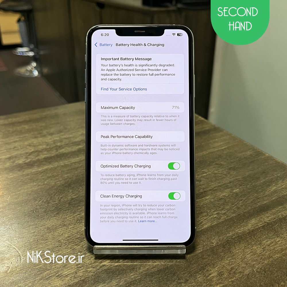 کلیه عکس های گوش ۱۱ پرومکس سیلور دست دوم مربوط به خود گوشی بوده و برای اطمینان شما عزیزان ۵ رقم از انتهای کد imei گوشی در بخش مشخصات ذکر شده است . این گوشی ۱۱ پرومکس دارای ظرفیت ۲۵۶ گیگ بوده و یک سیم کارت می باشد . iPhone 11 Promax 256GB Silver آگهی شده کاملا سالم و بدون بازشدگی می باشد. برای خرید گوشی دست دوم حتما باید کد ملی ، شماره موبایل و آدرس خریدار در فرم ثبت نام تکمیل گردد . شما عزیزان برای اطمینان از خرید می توانید در ساعت های کاری به آدرس فروشگاه نیک استور واقع در خیابان فرشته مراجعه کرده و آین آیفون ۱۱ پرومکس را از نزدیک مشاهده و تست نمایید .