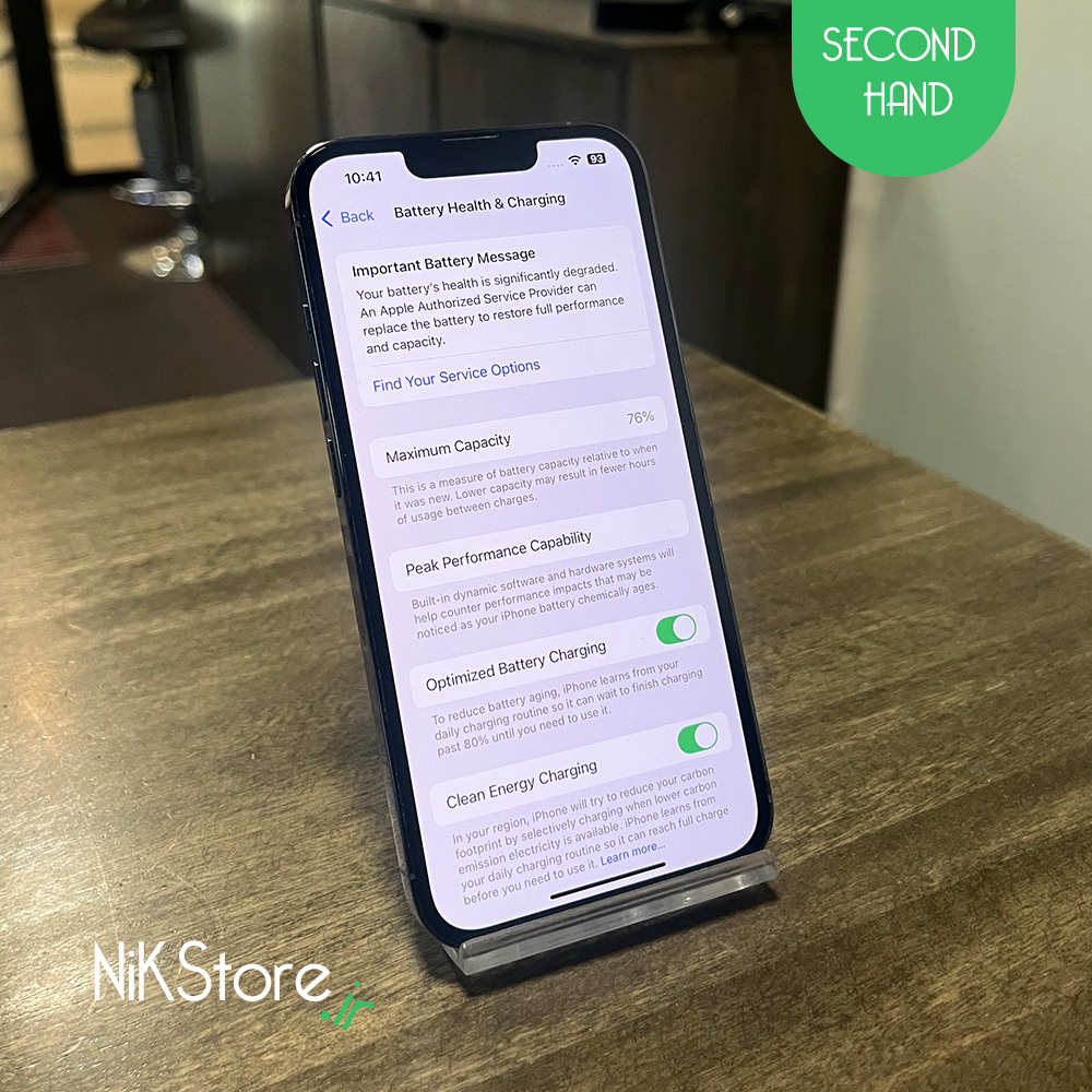 کلیه عکس های گوش دست دوم ۱۳ پرو مربوط به خود گوشی بوده و برای اطمینان شما عزیزان ۵ رقم از انتهای کد imei گوشی در بخش مشخصات ذکر شده است. این آیفون ۱۳ پرو دارای حافظه ۲۵۶ گیگ و باتری ۷۶ درصد اصلی می باشد. سلامت این دستگاه از طرف فروشگاه نیک استور تضمین شده و به شما اطمینان داده می شود که این محصول تا به حال باز نشده است . ۱۳ پرو آبی ۲۵۶ گیگ دو سیم دارای رجیستر شرکتی می باشد . برای خرید گوشی دست دوم حتما باید کد ملی ، شماره موبایل و آدرس خریدار در فرم ثبت نام تکمیل گردد و همچنین برای مشاهده و تست شما عزیزان میتوانید به آدرس فروشگاه اپل استور نیک واقع در خ فرشته - خ بوسنی هرزگوین - مجتمع مینیاتور مراجعه بفرمایید .