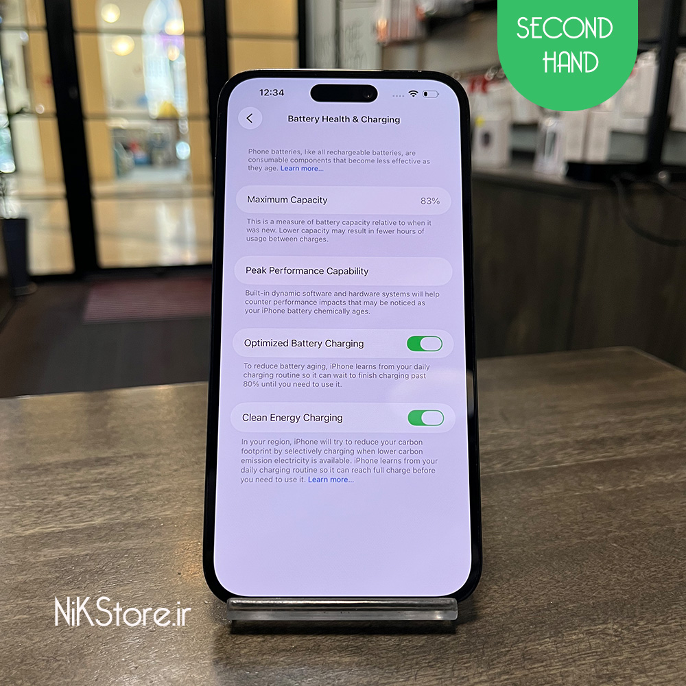 کلیه عکس های گوش دست دوم ۱۴ پرو مکس مشکی مربوط به خود گوشی بوده و برای اطمینان شما عزیزان ۴ رقم از انتهای کد imei گوشی در بخش مشخصات ذکر شده است . این ۱۴ پرو مکس دارای حافظه ۲۵۶ گیگ و باتری ۸۳ درصد اصلی می باشد. این دستگاه بسیار تمیز و سلامت میباشد و از طرف فروشگاه نیک استور تضمین شده و به شما اطمینان داده می شود که این محصول تا به حال باز نشده است . ۱۴ پرو مکس مشکی ۲۵۶ گیگ دوسیم کارت (ZAA) بدون رجیستری می باشد. برای خرید گوشی دست دوم حتما باید کد ملی ، شماره موبایل و آدرس خریدار در فرم ثبت نام تکمیل گردد و همچنین برای مشاهده و تست شما عزیزان میتوانید به آدرس فروشگاه نیک استور واقع در خیابان فرشته - خیابان بوسنی و هرزگوین - مجتمع تجاری مینیاتور مراجعه فرمایید .