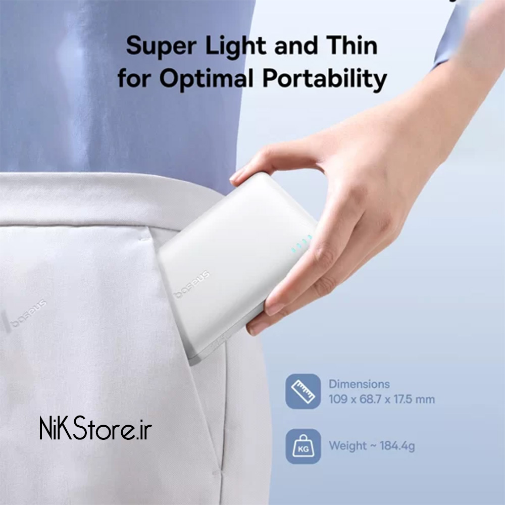 پاوربانک باسئوس مدل EnerFill FP21 ظرفیت 10000 میلیآمپر ، با شارژ چندگانه برای تلفنها ، هدفونها و تبلتها و وزن ۱۸۵ گرمی ایدهآل برای سفر می باشد . با شارژ سریع ۲۲.۵ وات PD + QC شارژ آیفون ۱۶ یا گلکسی S25 تا ۵۰٪ در ۳۰ دقیقه یا کمتر انجام میدهد .با ورودی/خروجی دوگانه USB-C شارژ و شارژ مجدد با استفاده از هر یک از پورتهای USB-C برای حداکثر راحتی. یک پورت USB-A برای دستگاههای قدیمی پشتیبانی از تلفنهای هوشمند قدیمی، دوربینها، بلندگوها و موارد دیگر.