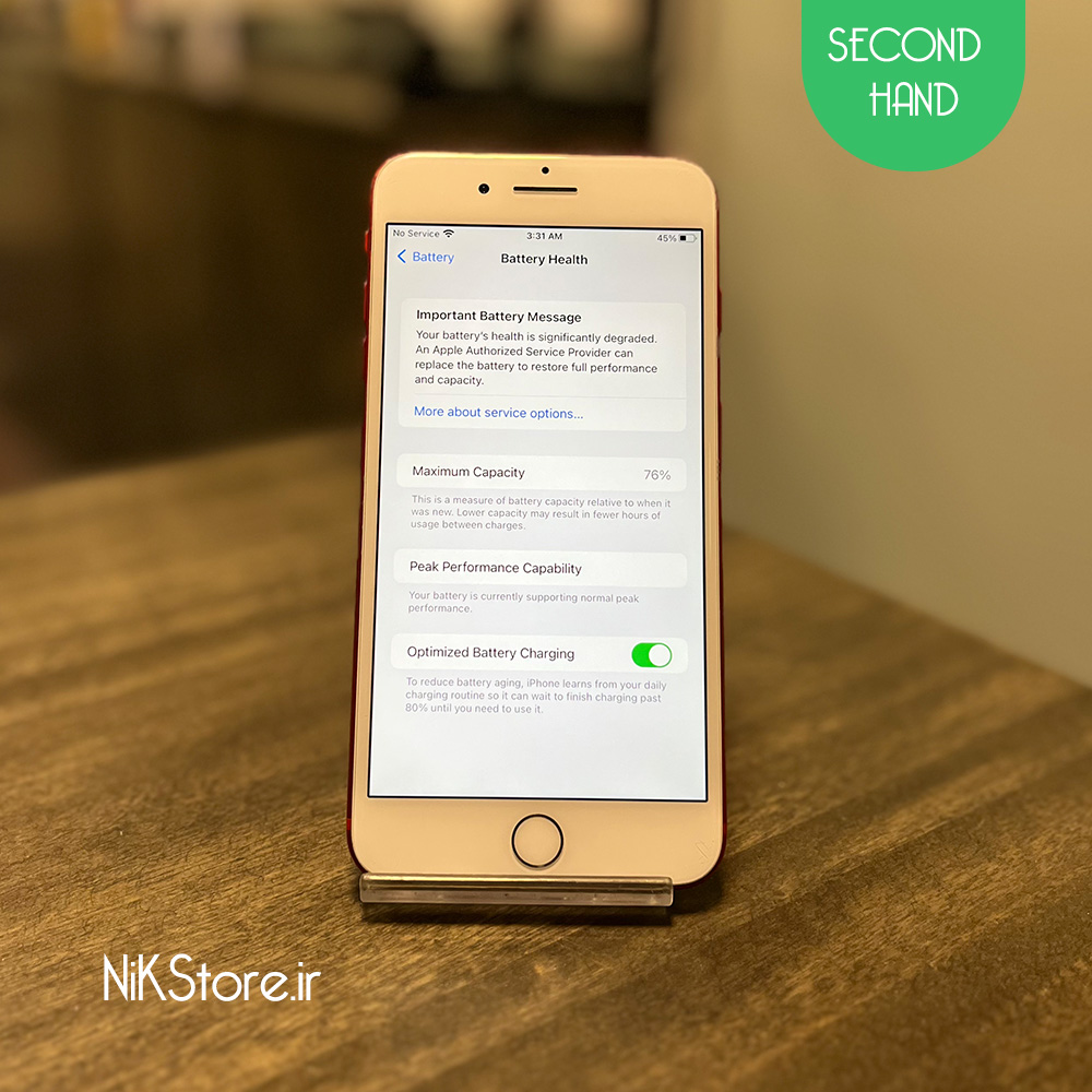 کلیه عکس های گوش ۷ پلاس ۱۲۸ گیگ قرمز دست دوم مربوط به خود گوشی بوده و برای اطمینان شما عزیزان ۵ رقم از انتهای کد imei گوشی در بخش مشخصات ذکر شده است . این گوشی بدون تعمیر و خرابی بوده و باتری آن ۷۶ درصد اصلی میباشد . گوشی از نظر سلامت فنی و اصل بودن قطعات از طرف فروشگاه نیک تضمین میگردد . ضمنا بدنه سالم پشت دستگاه دو نطقه بسیار کوچک بروی ال سی دی خط و خش سطحی دارد مطابق عکس ها میباشد . برای خرید گوشی دست دوم حتما باید کد ملی ، شماره موبایل و آدرس خریدار در فرم ثبت نام تکمیل گردد . همچنین برای بازدید می توانید از ساعت ۱۰ الی ۲۰ به فروشگاه نیک استور مراجعه بفرمایید .
