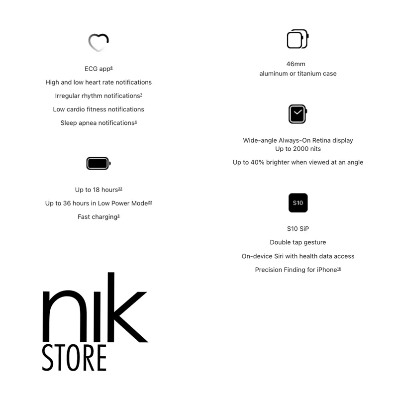 اپل واچ سری ۱۰ سایز ۴۲ آلومینیوم همون که همه مشتریان اپل سال ها منتظرش بودن . اپل بعد از سه نسل بلاخره دست به تغییر طراحی اپل واچ زد و اپل واچی نازک تر و با صفحه نمایش بزرگتر روانه بازارکرد . به گفته اپل iWatch 10 باریک ترین اپل واچ تولید شده است که با وزن ۳۰ گرمی میتونه گزینه مناسبی برای استفاده روزمره باشه . ابعاد اپل واچ سری ۱۰ سایز ۴۲ میلی متر به ترتیب ارتفاع ۴۲ عرض ۳۶ عمق ۹.۷ میلی متر دارد و با باتری لیتیوم ۳۲۷ میلی آمپر برای استفاده معمول به شما ۱۸ ساعت زمان میدهد . واچ سری ۱۰ به چیپست S10 اپل با ۶۴ گیگ فضا مجهز شده و نوید یک سرعت خوب و بی دغدغه رو به کاربران میدهد .