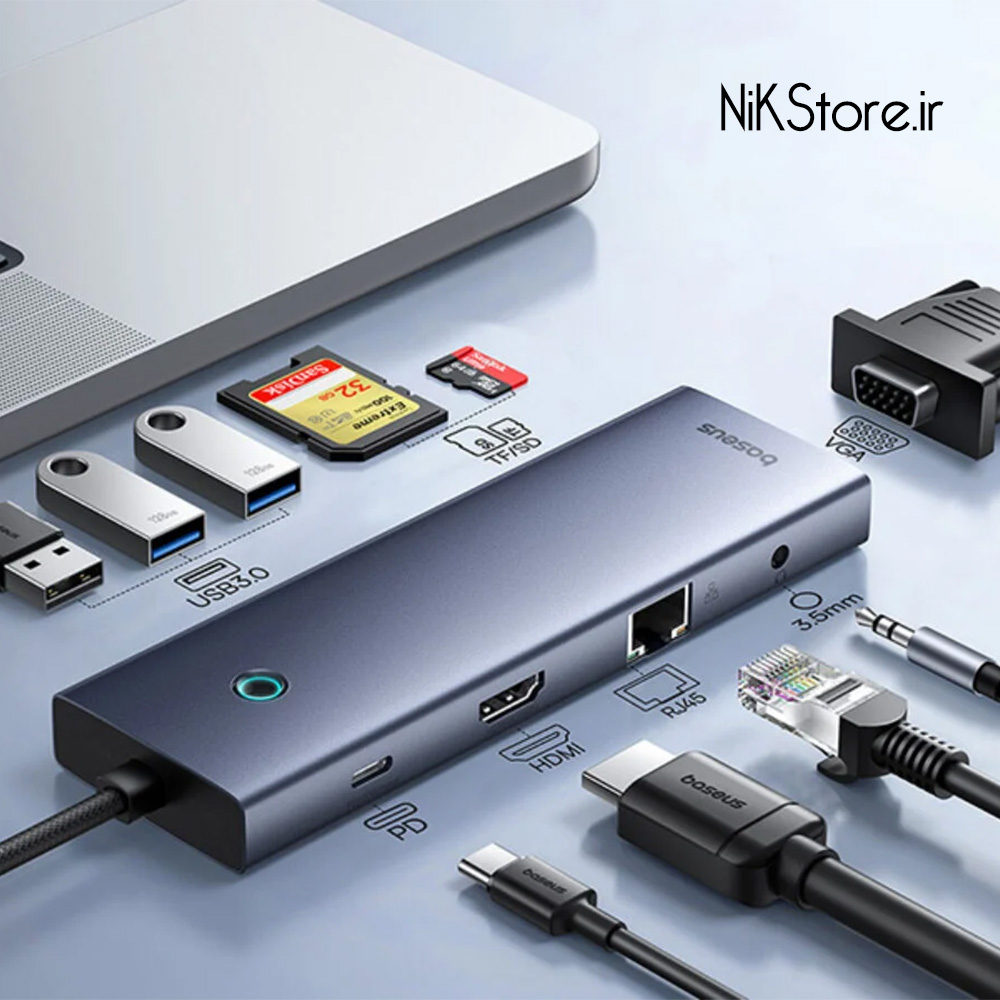 هاب USB-C باسئوس مدل BS-OH161 دارای ۱۰ عدد پورت متنوع است که شامل ۳ عدد پورت USB 3.0 ، یک عدد پورت تایپ سی PD ، یک عدد پورت HDMI با کیفیت 4k ، یک عدد پورت شبکه RJ45 ، دو عدد پورت میکرو و میکرو SD و یک عدد جک ۳.۵ میلی متر میباشد.هاب تایپ سی باسئوس مدل BS-OH161 با طراحی مدرن و جنس بدنه آلومینیوم و ابعاد بسیار جمع جور و سازگاری با سیستمعاملهای ویندوز، مکینتاش، لینوکس و ویستا یک انتخاب حرفهای و کاربردی برای افرادی است که به دنبال افزایش تعداد پورتهای دستگاه خود هستند .