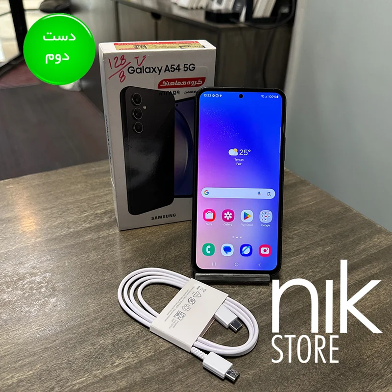کلیه عکس های سامسونگ گلکسی A54 مشکی مربوط به خود دستگاه می باشد . این گوشی از نظر سلامت ظاهری و فنی توسط نیک استور تست شده و مورد تایید فروشگاه نیک بوده و باز نشده می باشد . Samsung Galaxy A54 5G دست دوم دارای پک اصلی و کابل شارژ اصلی می باشد . سامسونگ گلکسی A54 مشکی رم ۸ ویتنام ۱۲۸ گیگ کارکرده دارای ۷ روز مهلت تست فنی بوده و برای اطمینان شما عزیزان ۵ رقم از انتهای کد imei گوشی در بخش مشخصات ذکر شده است . برای خرید گوشی دست دوم حتما باید کد ملی ، شماره موبایل و آدرس خریدار در فرم ثبت نام تکمیل گردد .